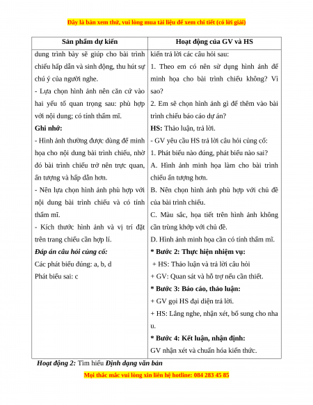 - Để tạo được bài trình chiếu hiệu quả và GV: Tổ chức HĐ2