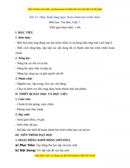 Giáo án Tin học 7 Kết nối tri thức Chủ đề 4 Bài 13 Thực hành tổng hợp: Hoàn thiện bài trình chiếu