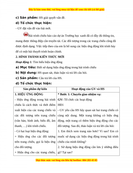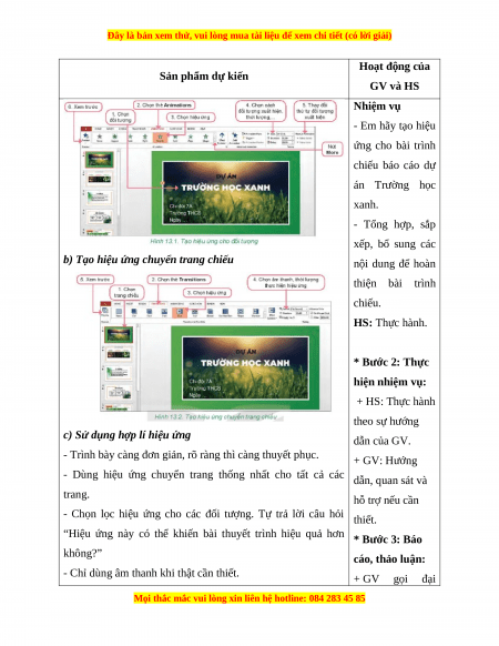 - Hiệu ứng động trong bài trình GV: Tổ chức các hoạt động