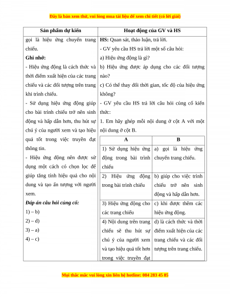 2) Hiệu ứng động b) giúp cho việc trình
