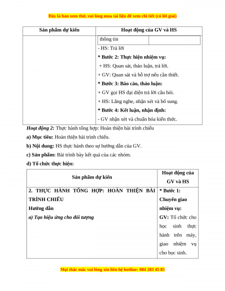 2. THỰC HÀNH TỔNG HỢP: HOÀN THIỆN BÀI * Bước 1: TRÌNH CHIẾU Chuyển giao Hướng dẫn nhiệm vụ: