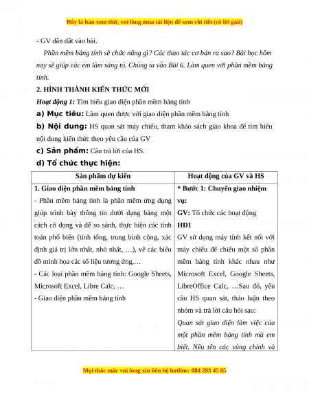 Giáo án Tin học 7 Kết nối tri thức Chủ đề 4 Bài 6 Làm quen với phần mềm bảng tính