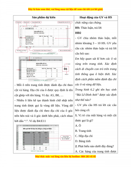 cột và hàng. Địa chỉ của ô được quy định là tên Trong hình 6.2 ghi tên học sinh