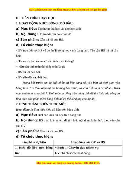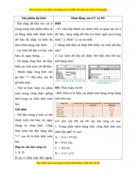 1. Kiểu dữ liệu trên bảng * Bước 1: Chuyển giao nhiệm vụ: tính