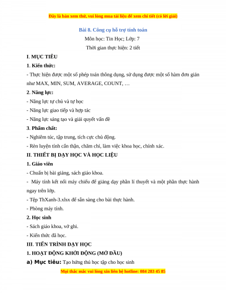 Giáo án Tin học 7 Kết nối tri thức Chủ đề 4 Bài 8 Công cụ hỗ trợ tính toán