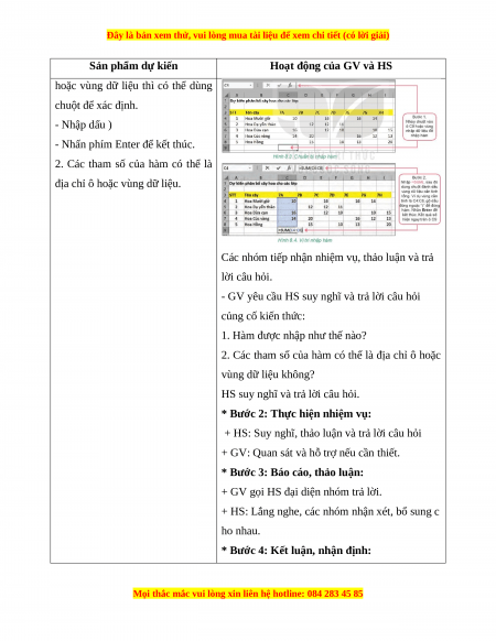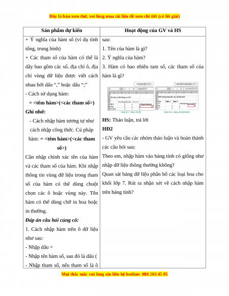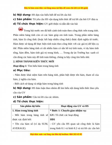 Hoạt động 1: Tìm hiểu hàm trong bảng tính a) Mục tiêu: