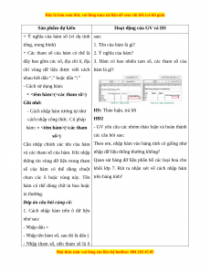 - Mỗi hàm trong bảng tính sẽ GV: Tổ chức các hoạt động được xác định bởi: HĐ1