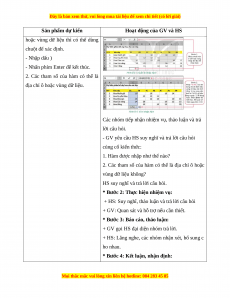 - Tệp ThXanh-3.xlsx để sẵn sàng cho bài thực hành. - Phòng máy tính. 2. Học sinh - Sách giáo khoa, vở ghi. - Kiến thức đã học.