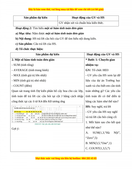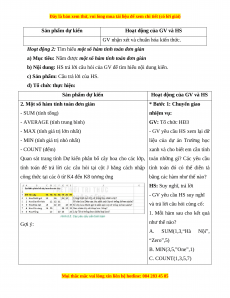 tổng, hàm đếm, hàm tính giá trị trung bình, … Trong dự án Trường học xanh có