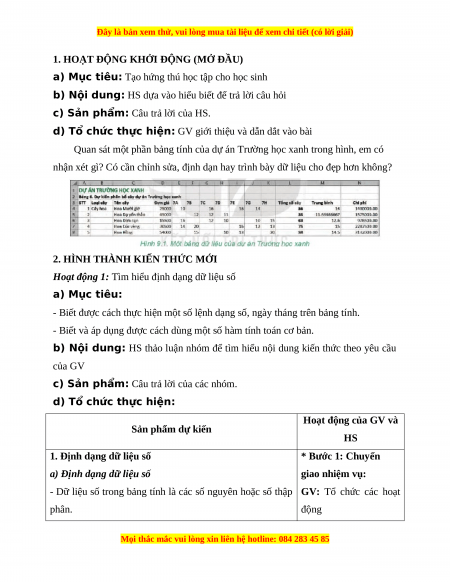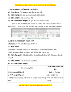 Hoạt động 1: Tìm hiểu định dạng dữ liệu số a) Mục tiêu:
