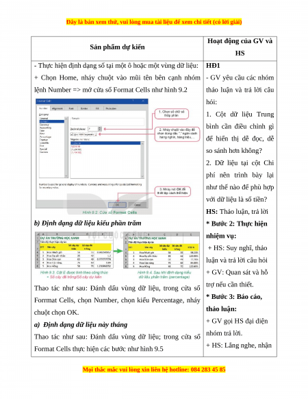 Format Cells thực hiện các bước như hình 9.5 + HS: Lắng nghe, nhận