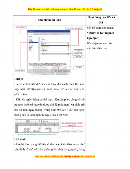 tháng đều là kiểu hiển thị ngày của Việt Nam) Ghi nhớ:
