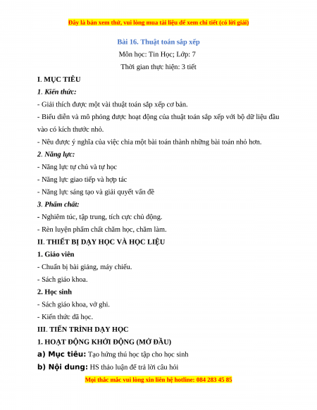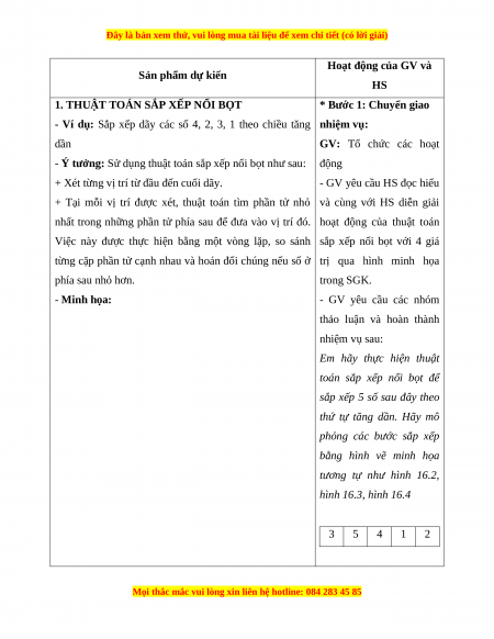 Giáo án Tin học 7 Kết nối tri thức Chủ đề 5 Bài 16 Thuật toán sắp xếp