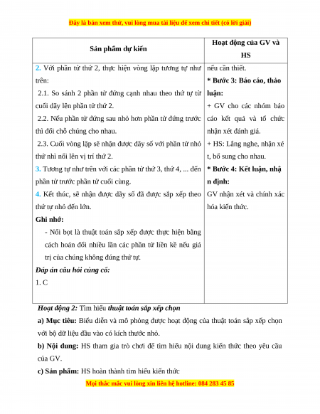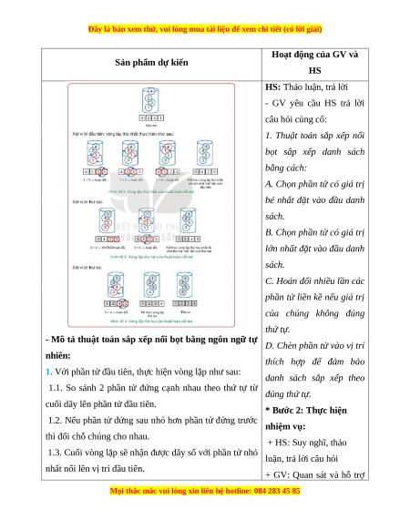 Hoạt động 1: Tìm hiểu thuật toán sắp xếp nổi bọt