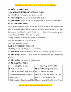 III. TIẾN TRÌNH DẠY HỌC
