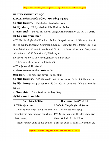 - Chuẩn bị hình ảnh các thiết bị ngoại vi thông dụng của máy tính. 2. Học sinh - Sách giáo khoa, vở ghi. - Kiến thức đã học.