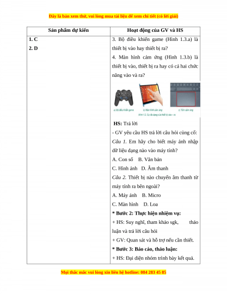 dụng: máy chiếu, bộ điều khiển 3. Thiết bị nào nhận thông tin từ máy