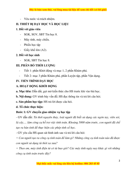2. Đối với học sinh - SGK, SBT Tin học 8.