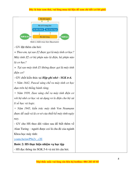 Hoạt động 1: Máy tính điện cơ và kiến trúc Von Neumann