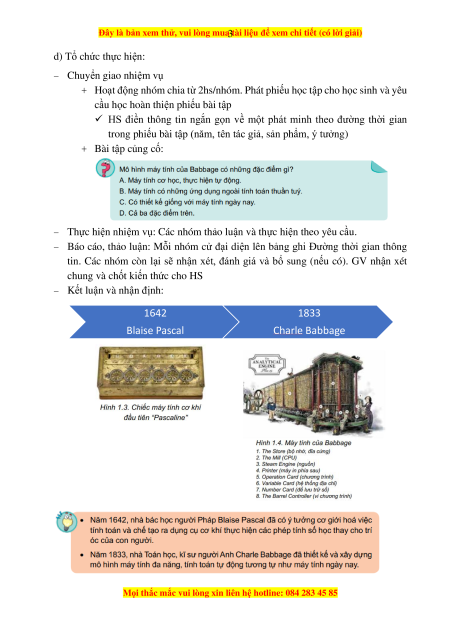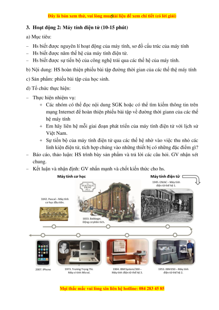 2. Hoạt động 1: Sự ra đời của máy tính (10-15 phút) a) Mục tiêu: