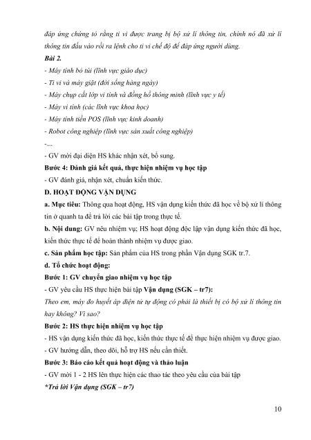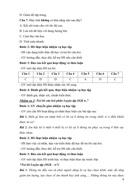 - Sau khi HS trả lời, GV kết luận về nội dung thiết bị