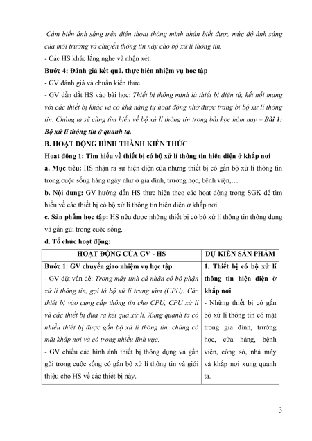 Hoạt động 1: Tìm hiểu về thiết bị có bộ xử lí thông tin hiện diện ở khắp nơi