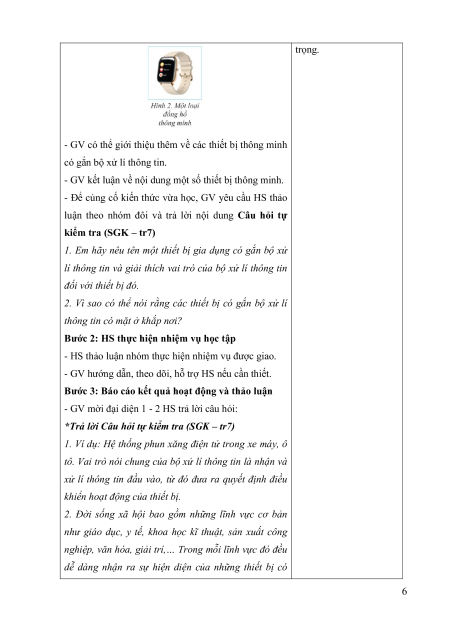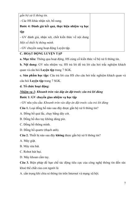 c. Sản phẩm học tập: HS nêu được những thiết bị có bộ xử lí thông tin thông dụng