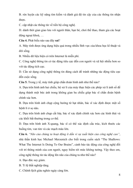 trong mọi lĩnh vực (y tế, ngân hàng, hàng không, toán học, sinh học,…), nêu được ví dụ minh hoạ. 3. Phẩm chất