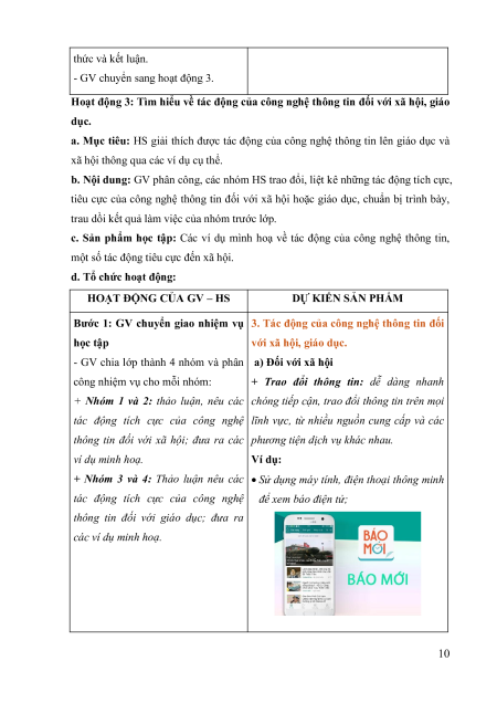 - Giải thích được tác động của công nghệ thông tin lên giáo dục và xã hội