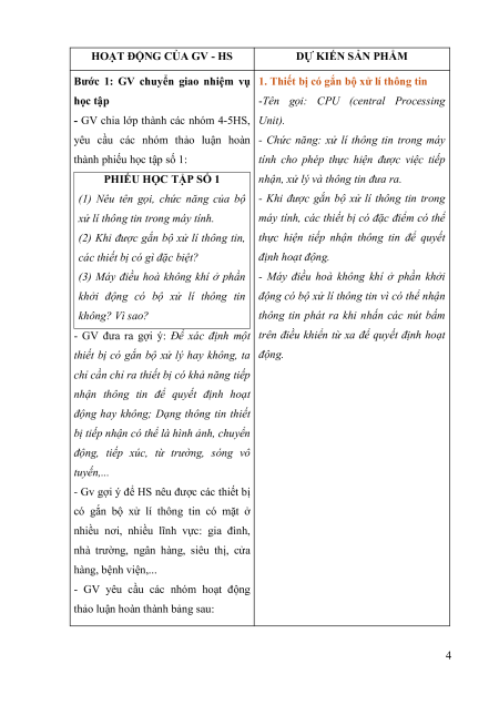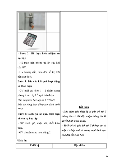 Bước 1: GV chuyển giao nhiệm vụ 1. Thiết bị có gắn bộ xử lí thông tin học tập
