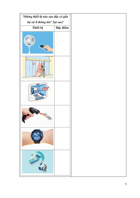 trong máy; nhận biết được các thiết bị nào có gắn bộ xử lí thông tin.