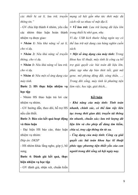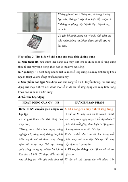 nơi và trình bày được khả năng, ứng dụng thực tế của máy tính cũng như tác động