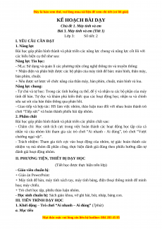 Bài 3. Máy tính và em (Tiết 1) Lớp 3: Số tiết: 2 I. YÊU CẦU CẦN ĐẠT 1. Năng lực