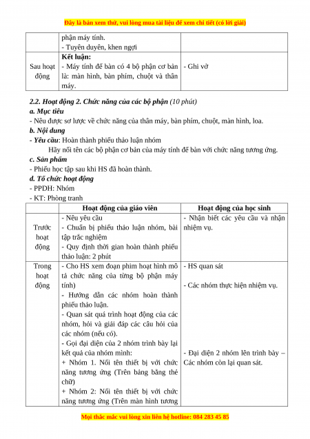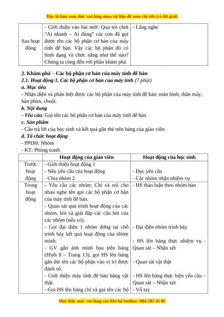 2.1. Hoạt động 1. Các bộ phận cơ bản của máy tính (7 phút) a. Mục tiêu