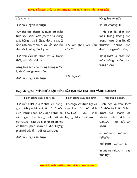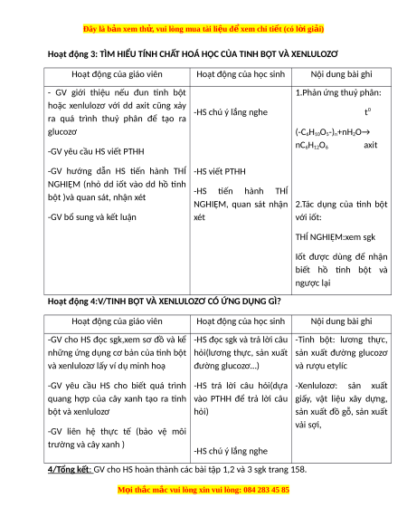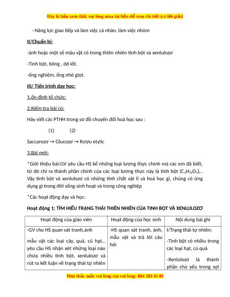 Giáo án Tinh bột và xenlulozơ Hóa học 9