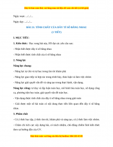 - Nhận biết được tính chất của tỉ số bằng nhau 2. Năng lực Năng lực chung: