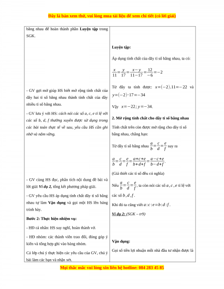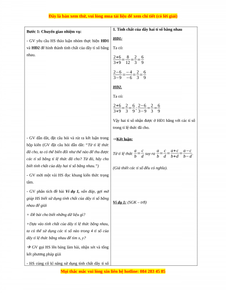 Giáo án Tính chất của dãy tỉ số bằng nhau Toán 7 Kết nối tri thức