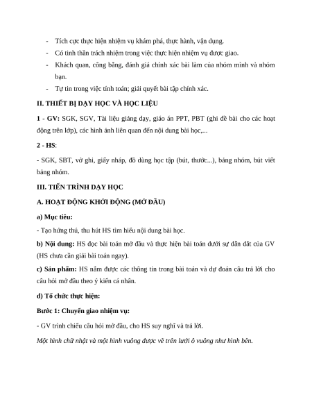 A. HOẠT ĐỘNG KHỞI ĐỘNG (MỞ ĐẦU) a) Mục tiêu: