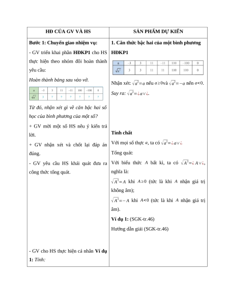 hỏi, HS nhận biết tính chất căn thức bậc hai của một bình phương.