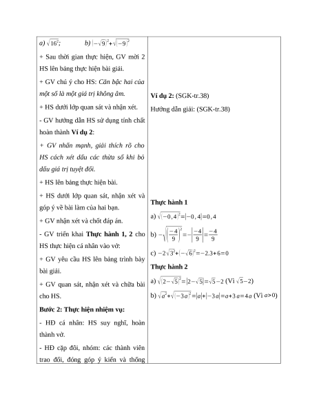 √A2=−A khi A<0 (tức là khi A nhận giá trị âm). Ví dụ 1: (SGK-tr.46)