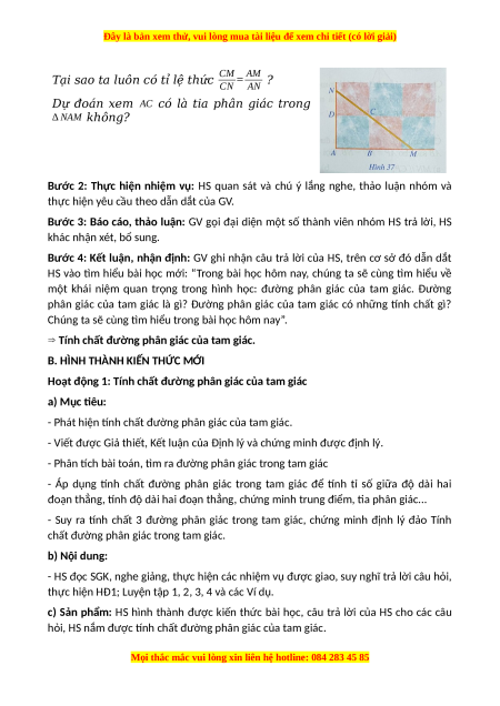 Giáo án Tính chất đường phân giác của tam giác Toán 8 Cánh diều