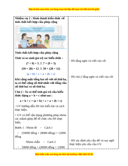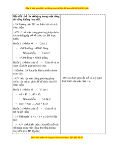 - HS nh n bi t tính ch t giao hoán, tính ch t k t h p c a phép c ng; th hi n ậ ế ấ ấ ế ợ ủ ộ ể ệ