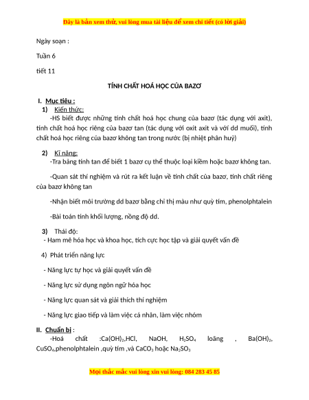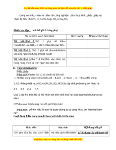 - Năng lực giao tiếp và làm việc cá nhân, làm việc nhóm II. Chuẩn bị : -Hoá chất :Ca(OH)2,HCl, NaOH, H2SO4 loãng , Ba(OH)2,