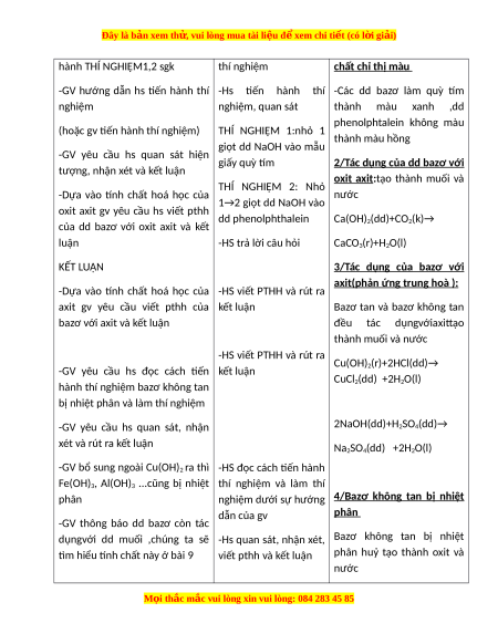 axit gv yêu cầu viết pthh của kết luận Bazơ tan và bazơ không tan