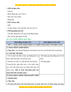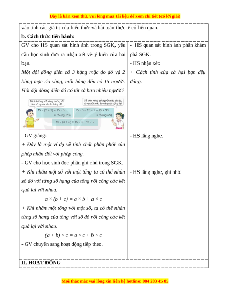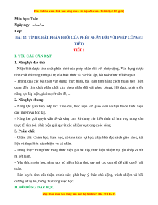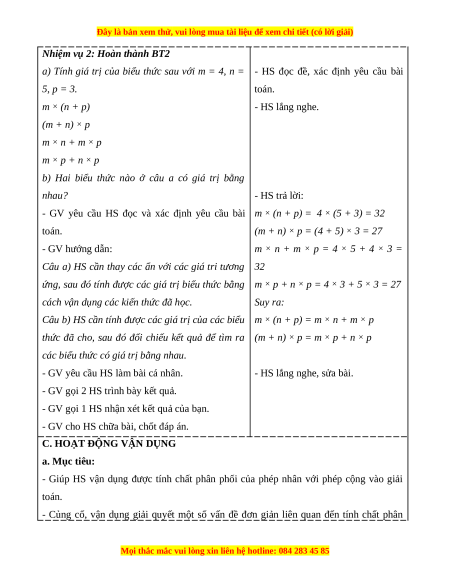 - HS nhận biết được tính chất phân phối của phép nhân đối với phép cộng vận dụng