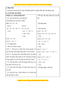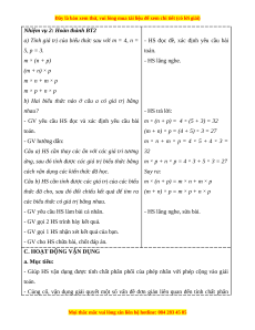quan đến tính chất phân phối của phép nhân đối với phép cộng), HS được phát triển