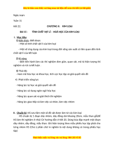 Bài 15 : TÍNH CHẤT VẬT LÍ - HOÁ HỌC CỦA KIM LOẠI I. M ục tiêu : 1) K