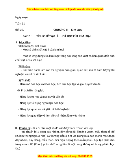 II. Chuẩn bị :-HS sưu tầm một số đồ vật được làm từ các kim loại
