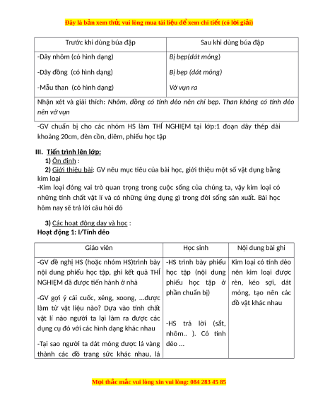 Đây là bản xem th , vu ử i lòng mua tài li u ệ đ xe ể m chi ti t (c ế ó l i ờ gi i ả ) Trước khi dùng búa đập Sau khi dùng búa đập -Dây nhôm (có hình dạng) Bị bẹp(dát mỏng)