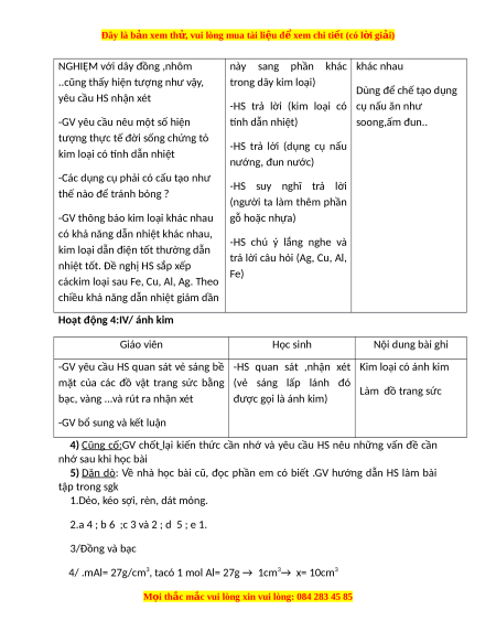 Hoạt động 4:IV/ ánh kim Giáo viên Học sinh Nội dung bài ghi